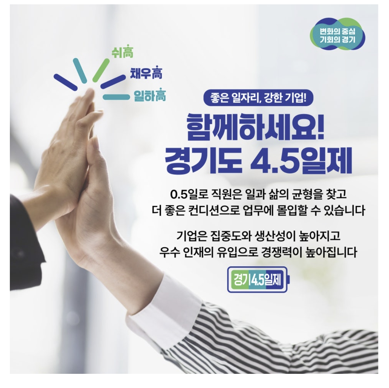 경기도 4.5일제 시범사업은 단순한 근무 단축을 넘어 직원 복지와 기업 경쟁력을 동시에 강화할 수 있는 제도입니다.