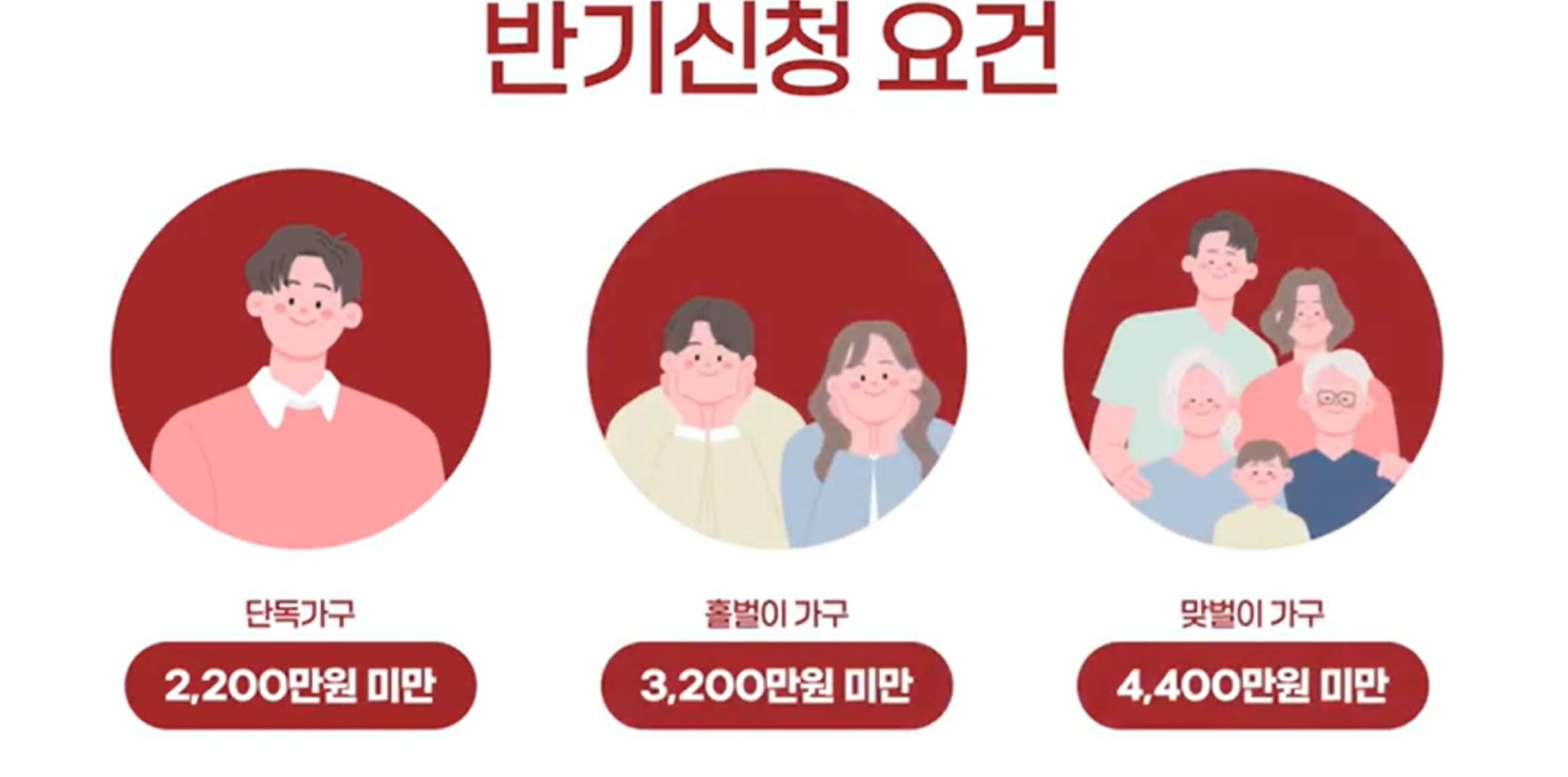 - 단독 가구: 연간 총소득 2,200만 원 미만
