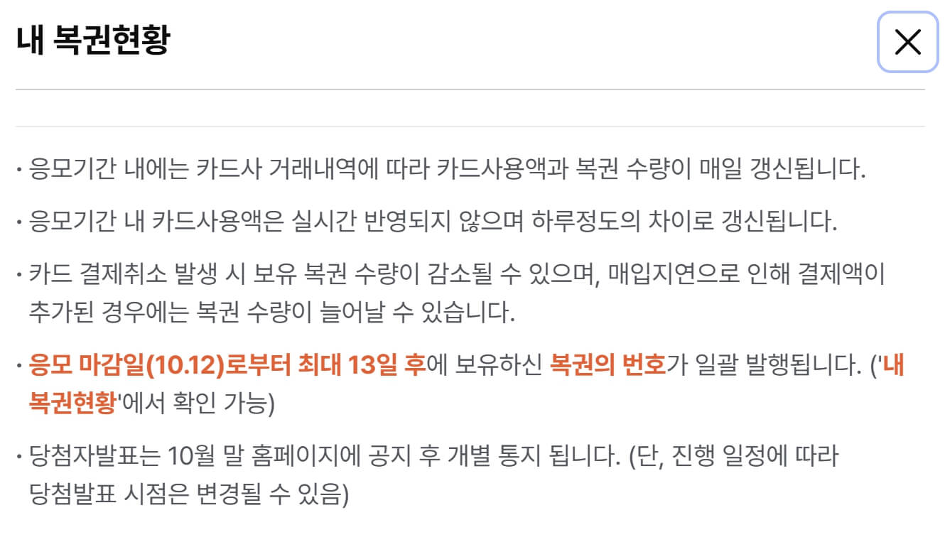- ✅ 복권 번호는 10월 12일 이후 최대 13일 이내 발급