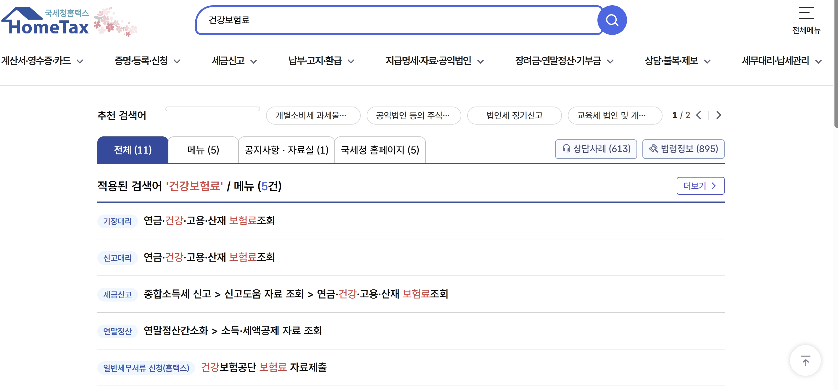 - 홈택스 연말정산 간소화 서비스 → 건강보험료 조회