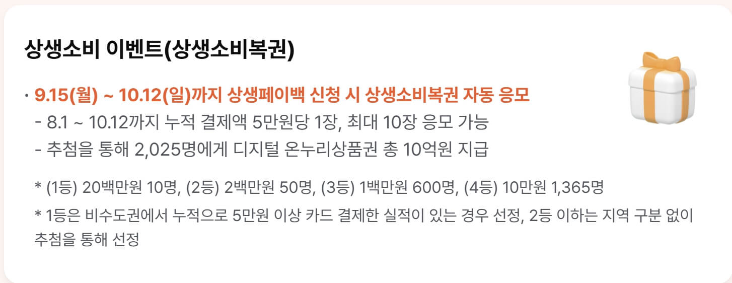 - 신청방법: 상생페이백 누리집 온라인 접수 (1회 신청으로 3개월 자동 적용)
