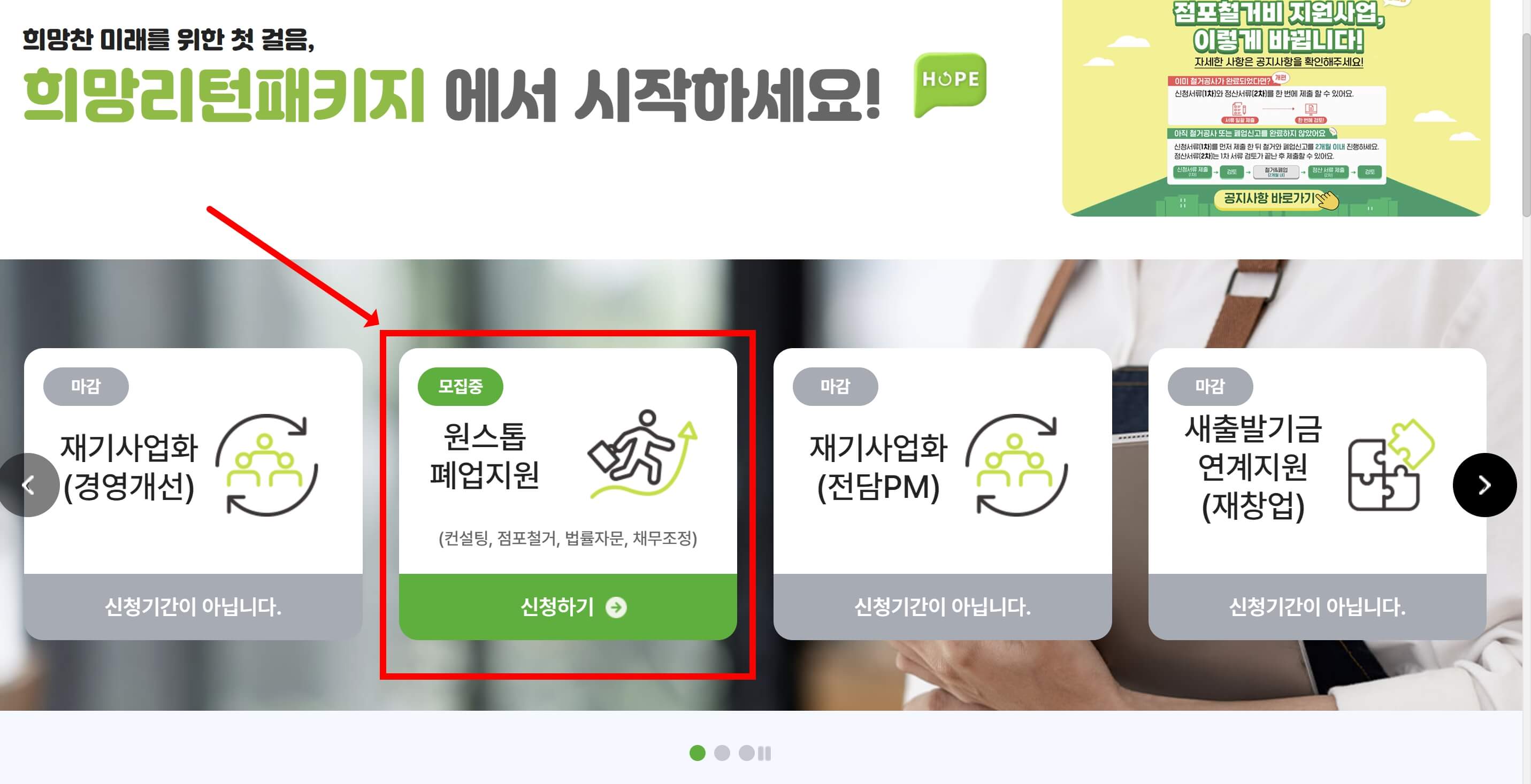 1️⃣ 희망리턴패키지 홈페이지 접속