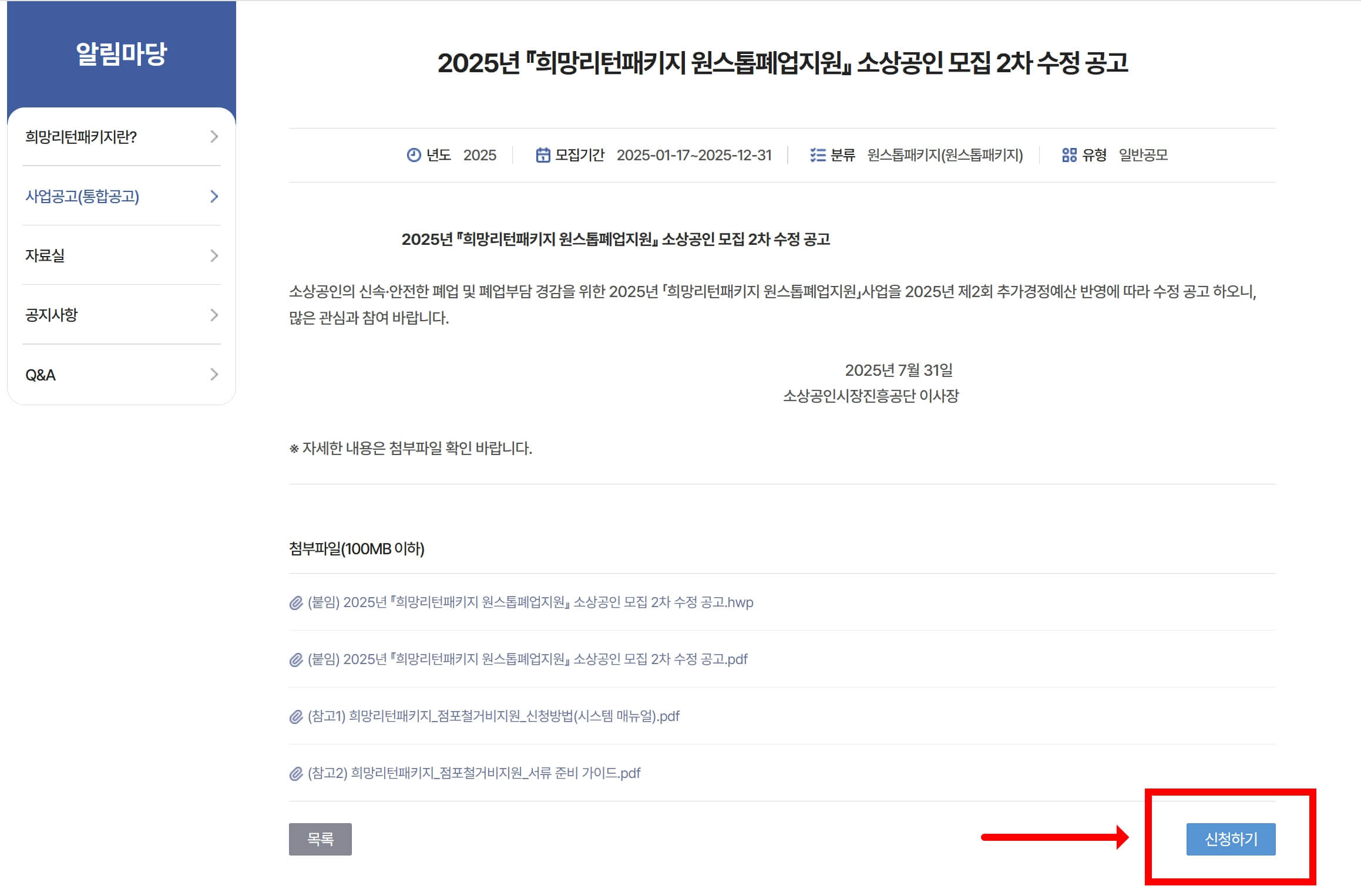 2️⃣ 오른쪽 하단 신청하기 클릭